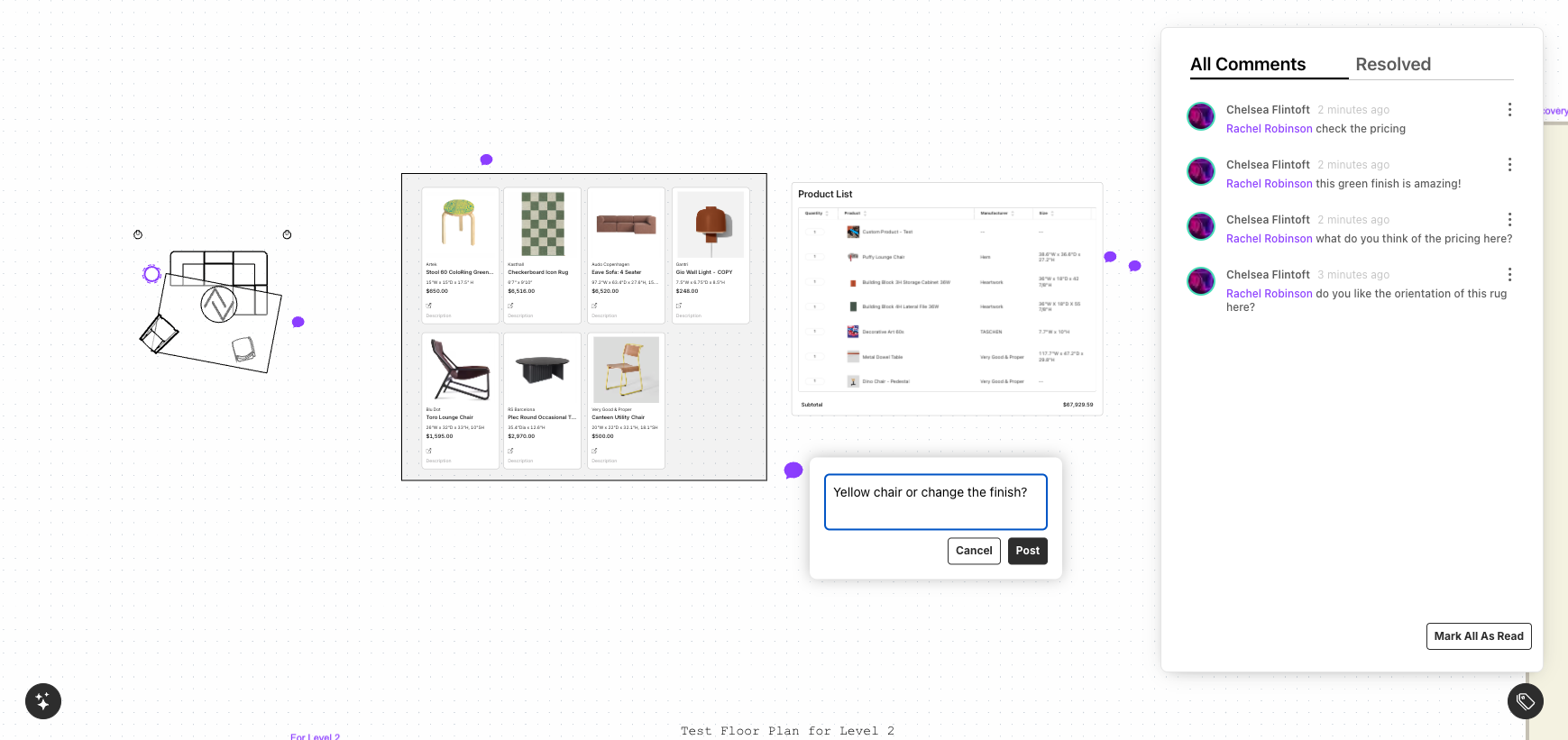 * Place the purple speech bubble icon on the area(s) you'd like to leave your comment. When the icon is placed, a window will open up that allows you to input your comment. Hit **Post** after making your notes.